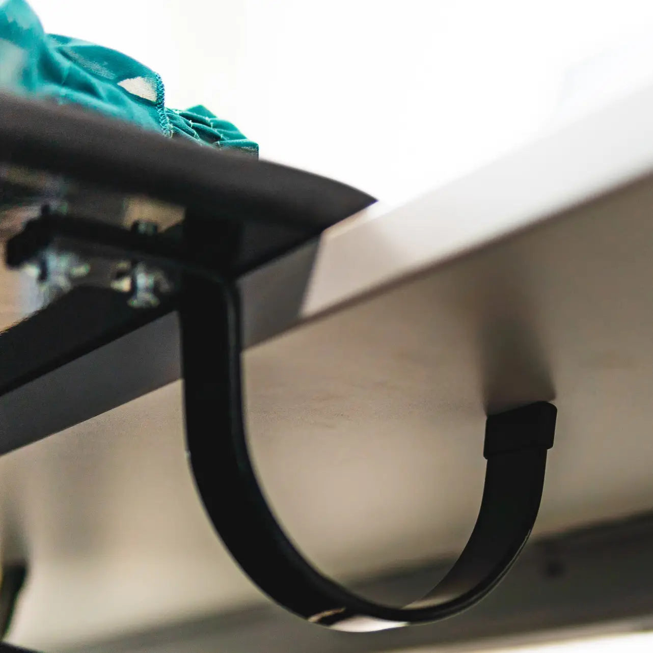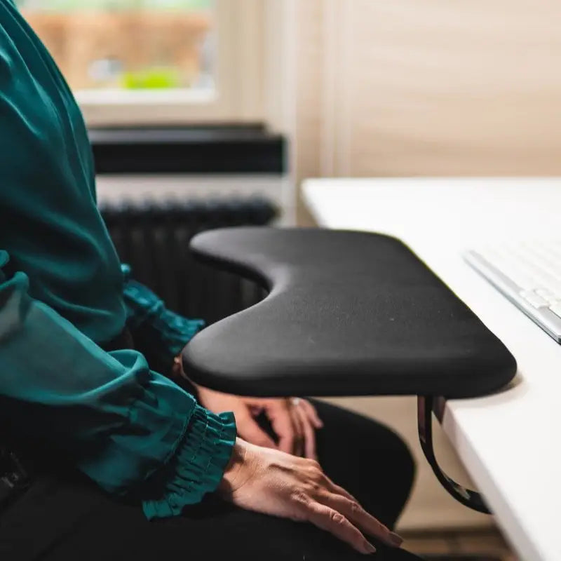 Soms kan het lastig zijn om de armsteunen van de bureaustoel te gebruiken. Je hebt eerder het gevoel dat ze in de weg zitten in plaats van dat ze je net goed ondersteunen. Zeker bij bureaustoelen waar deze niet goed instelbaar zijn zal je ze waarschijnlijk eerder helemaal naar beneden gaan zetten. Dit kan potentieel nekklachten veroorzaken: het gewicht van je armen wordt namelijk niet meer gedragen en trekt als het ware aan de nekspieren. Aanhaakarmsteunen kunnen dan de oplossing bieden: je haakt ze simpelweg aan je bureau en je hebt meteen een ergonomische bureau mét buikuitsparing!