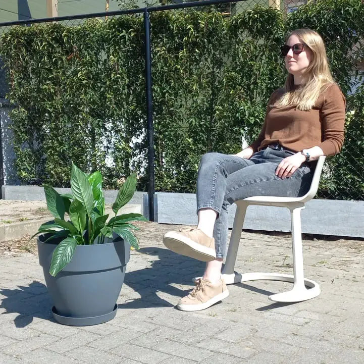 Het is het vaak lastig om buitenstoelen te vinden die zowel comfortabel als duurzaam zijn, zeker wanneer je langdurig buiten zit of graag beweeglijk zit. Veel standaard tuinstoelen bieden weinig ergonomische ondersteuning en zijn niet ontworpen met beweging of langdurig comfort in gedachten. Daarom hebben wij een unieke ergonomische tuinstoel ontwikkeld die hierin wél voorziet. Dankzij het slimme ontwerp kun je actief en beweeglijk zitten, terwijl de stoel toch een uitzonderlijk hoog zitcomfort biedt. Bovendien is de stoel vervaardigd uit gerecycleerd polypropyleen, wat niet alleen milieuvriendelijk is maar ook zorgt voor stevigheid en een lange levensduur. De stoelen zijn volledig weerbestendig en kunnen dus probleemloos buiten blijven staan, ongeacht het seizoen. Ook het onderhoud is bijzonder eenvoudig: even afspoelen volstaat. Zo combineer je duurzaamheid, comfort en gebruiksgemak in één stijlvolle oplossing voor jouw tuin.