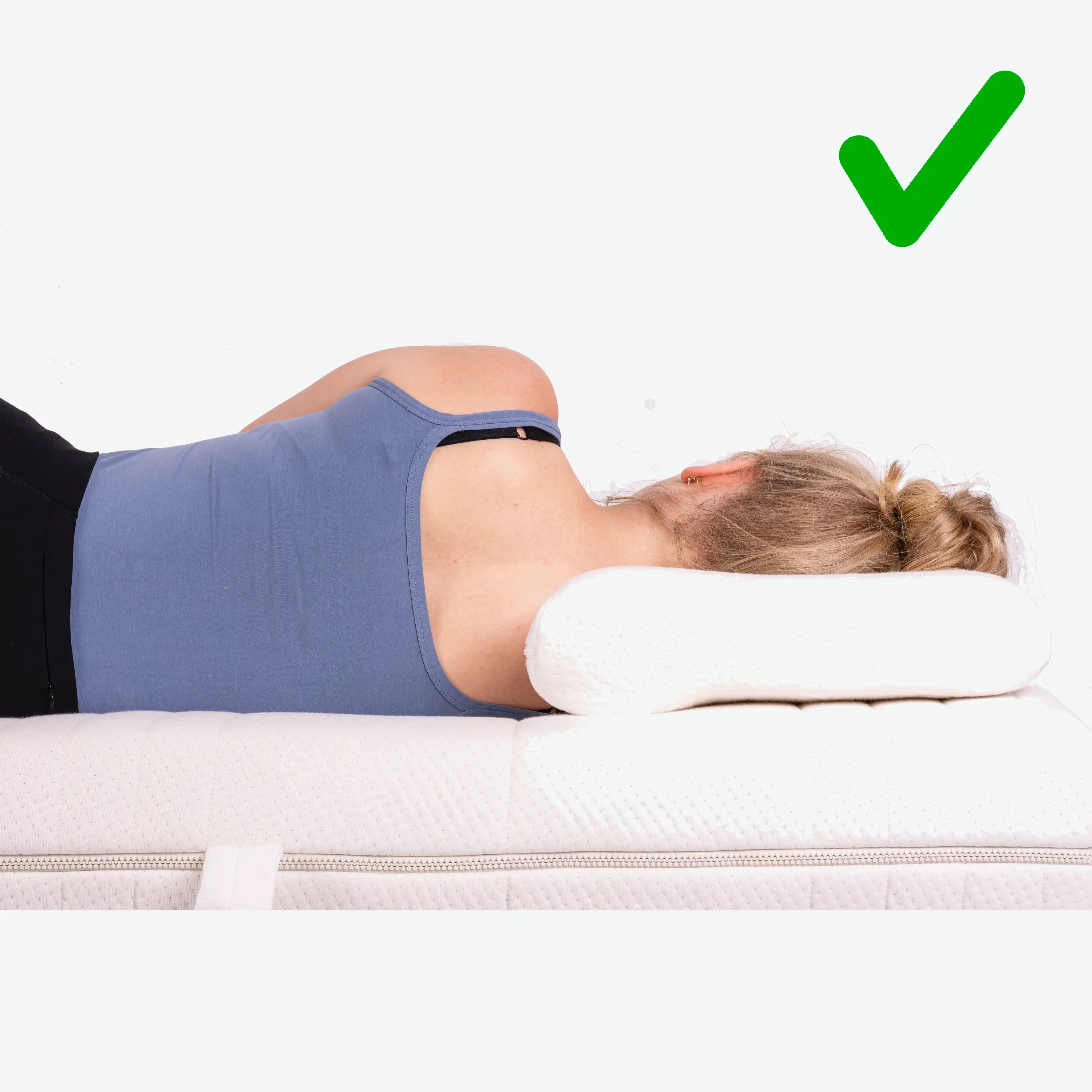 Zijslapers moeten hun nekwervels in lijn met de wervelkolom houden om druk en spierspanning te vermijden.