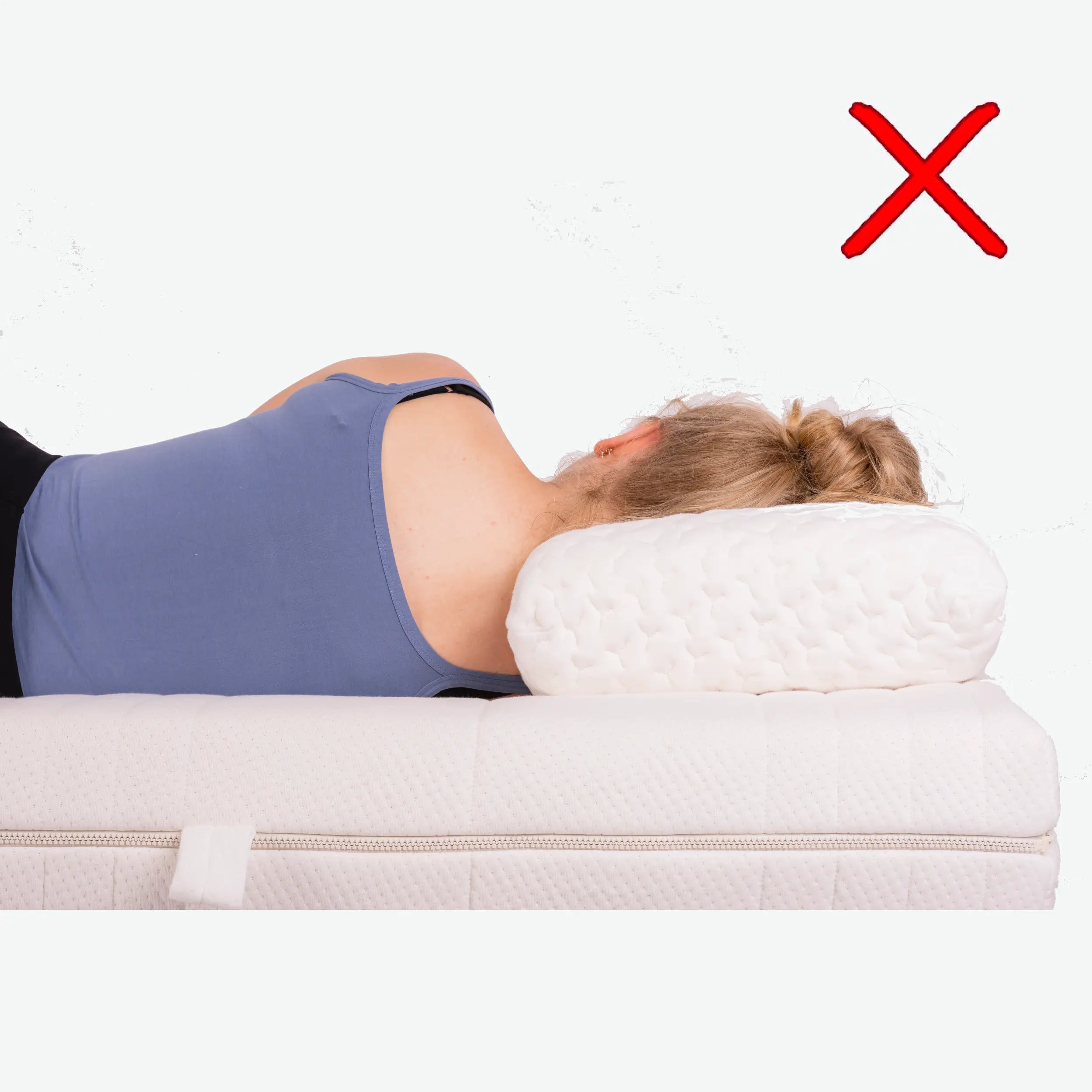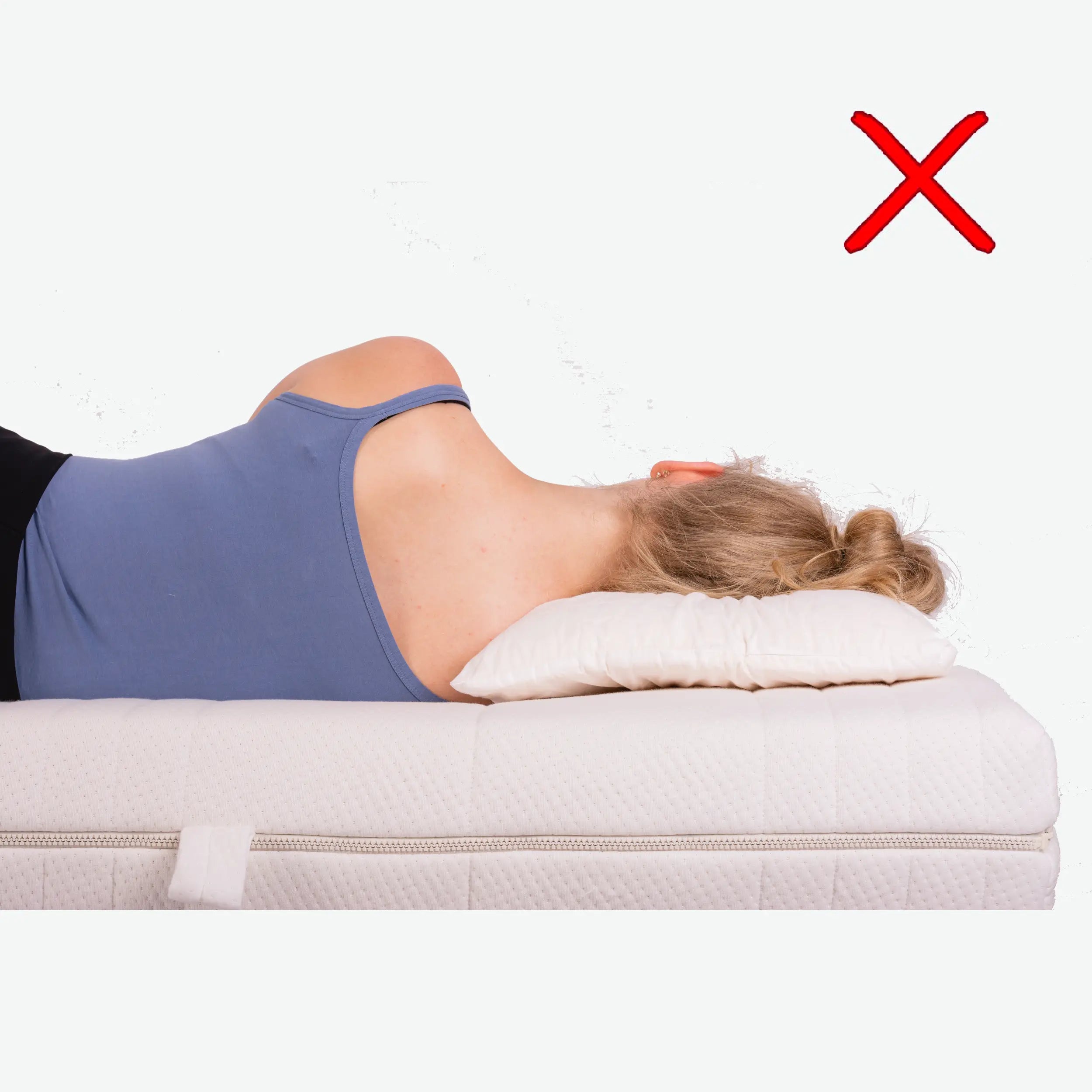 Een te hoog hoofdkussen duwt het hoofd omhoog waardoor er spanning ontstaat op de nekspieren.