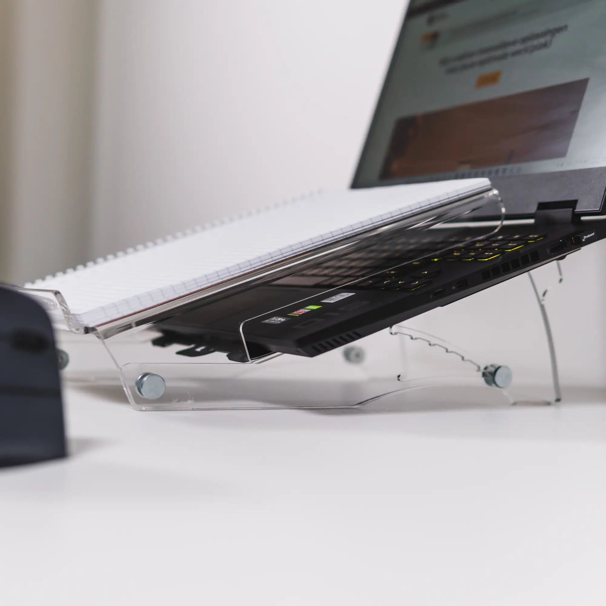 Om het je nog makkelijker te maken bestaan er nu ook laptopverhogers die je kan vastplakken onderaan je laptop. Zo heb je hem altijd bij de hand en kan je hem zeker niet vergeten.