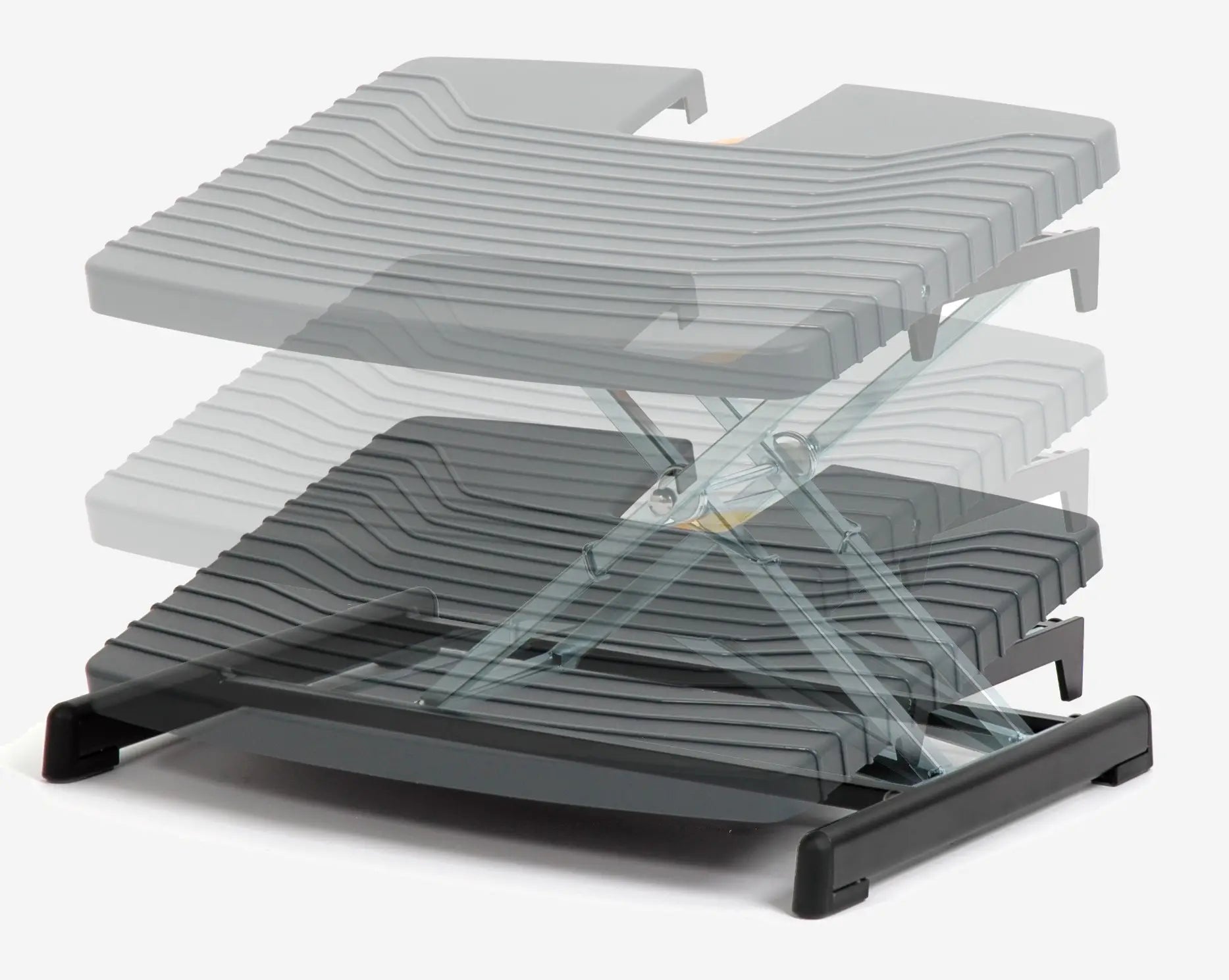 Zitten jouw voeten niet stevig op de grond terwijl je aan het werk bent, en is je bureau of bureaustoel niet voldoende verstelbaar? Dat kan leiden tot een onnatuurlijke en belastende werkhouding. Onze ergonomische voetsteunen bieden hiervoor de ideale oplossing: ze zorgen ervoor dat je jouw voeten comfortabel en stabiel plat kunt plaatsen, wat essentieel is voor een correcte zithouding. Door je benen en onderrug op de juiste manier te ondersteunen, stimuleer je een gezonde werkhouding, verminder je lichamelijke klachten en verhoog je je comfort tijdens lange werkdagen.