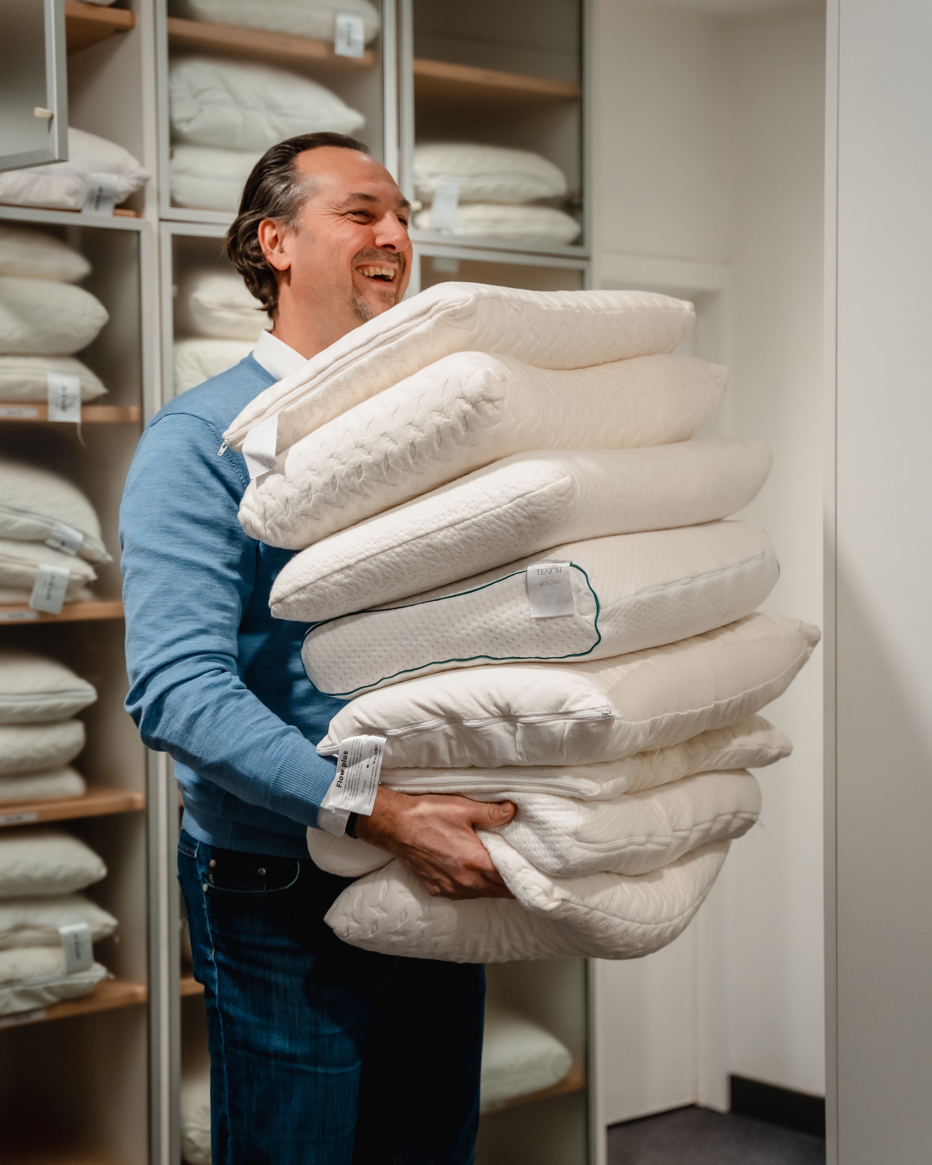 Our advisors are happy to advise you, taking your personal situation into account. Is your bed at home a bit harder on your shoulders than you estimated? Will that office chair feel just as comfortable if I actually work on it for a week?