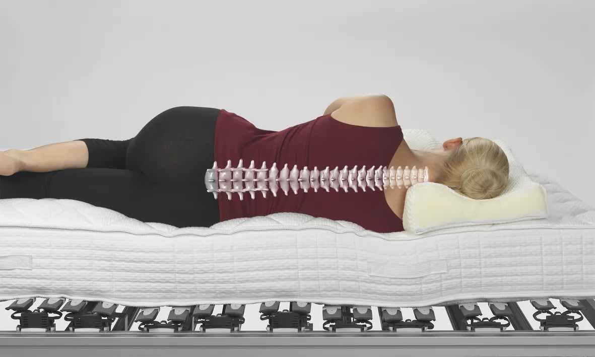 Onze adviseurs zijn opgeleid om de lattenbodem in te stellen op jouw persoonlijke lichaamsbouw. Op die manier kunnen we de perfecte wervelkolompositie garanderen. We controleren dit manueel door de positie van de wervels na te gaan.
