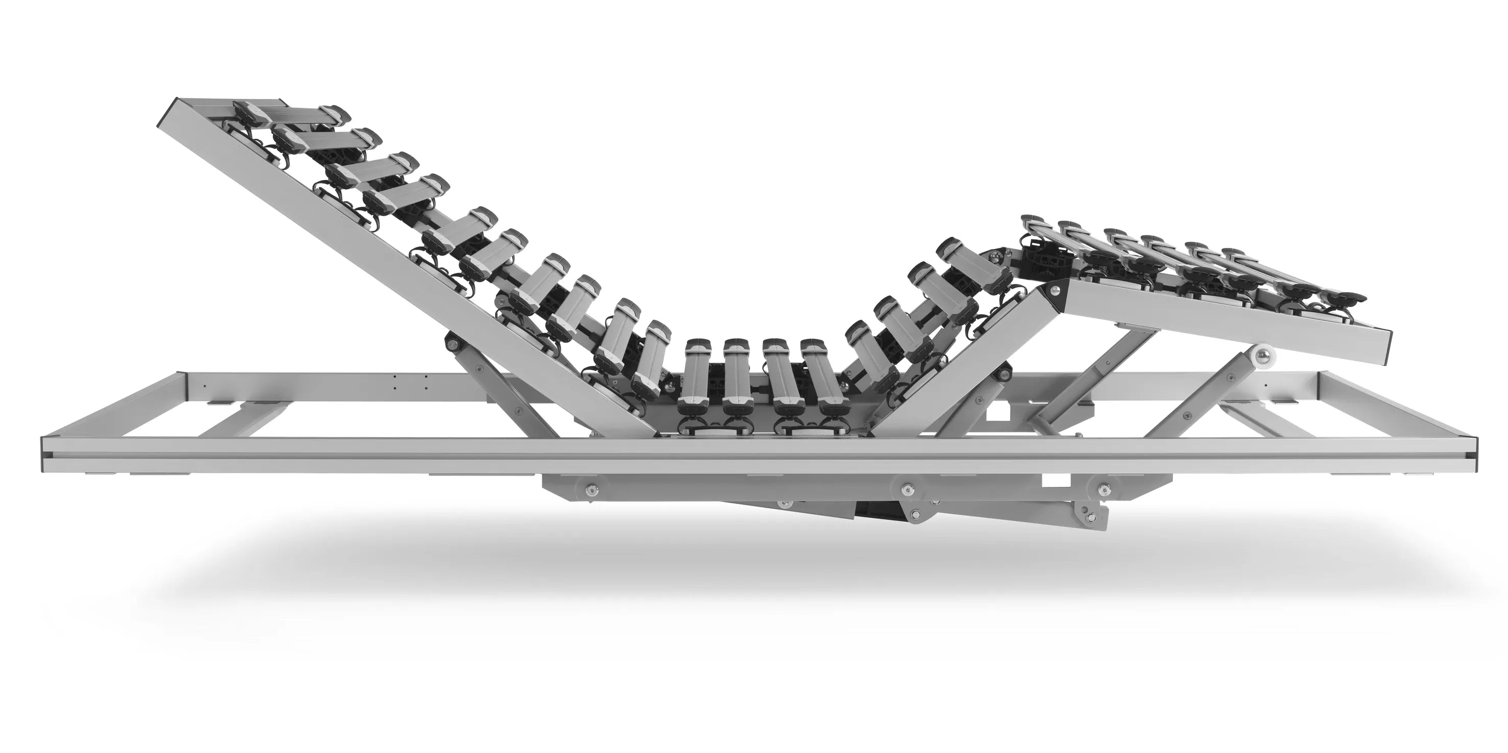 Voor optimale rugondersteuning moet elke lat afzonderlijk instelbaar zijn in verschillende hardheden, zodat je nauwkeurig de juiste steun per zone kunt bepalen. Het schuifmechanisme biedt 9 standen om de latten meer of minder buiging te geven, en de draaglatten variëren in glasvezelverhouding afhankelijk van de zonering. Dit helpt om in zijligging een rechte wervelkolom te behouden en in rugligging de natuurlijke S-curve optimaal te ondersteunen.