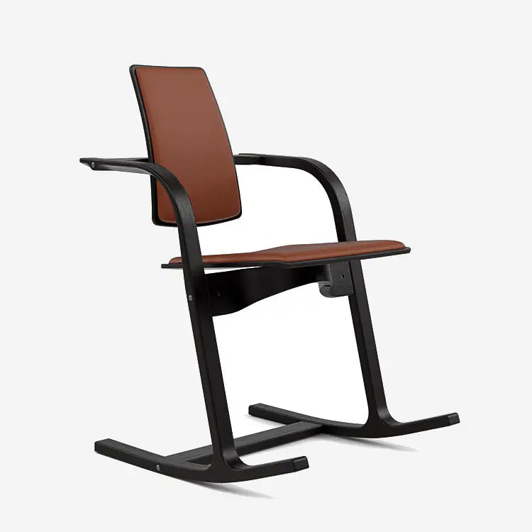 De Actulum™ is een veelzijdige stoel die zich moeiteloos aanpast aan jouw lichaam en beweging – of je nu werkt, vergadert of eet. Dankzij de gebogen houten schommelpoten reageert hij subtiel op je houding: leun je naar voren, dan beweegt de stoel mee; leun je achterover, dan biedt hij zachte ondersteuning. Zo blijf je vanzelf in beweging en behoud je een actieve, ontspannen zithouding zonder erbij stil te staan.