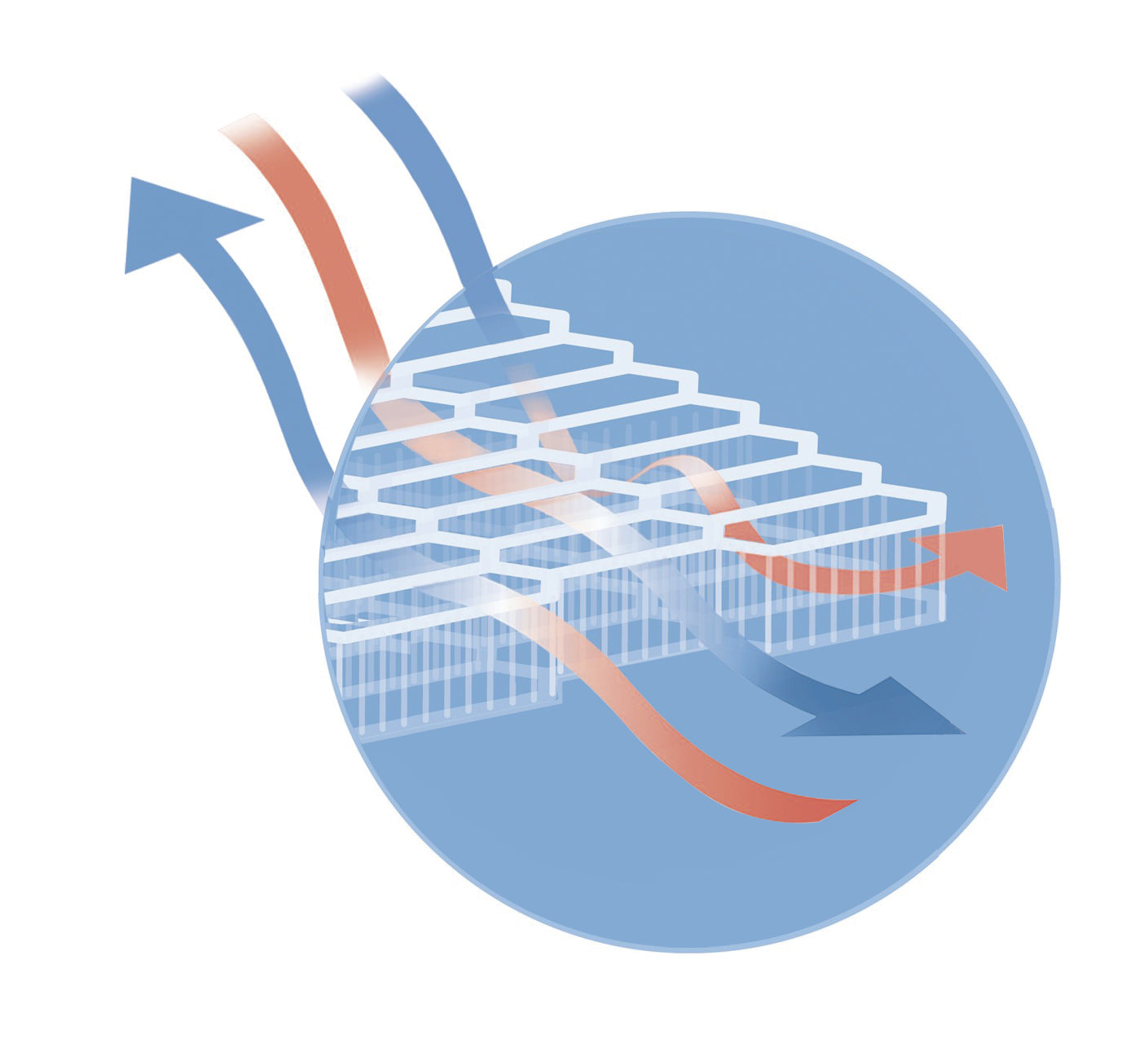De AeroSleep Original matrasopleg heeft een open 3D-honingraatstructuur, waar de lucht vrij door circuleert, Warme lucht van het lichaam wordt afgevoerd en frisse lucht vanuit de omgeving wordt aangevoerd. Hierdoor kan overtollige transpiratie moeiteloos verdampen, wat zorgt voor een optimale regeling van de lichaamstemperatuur.