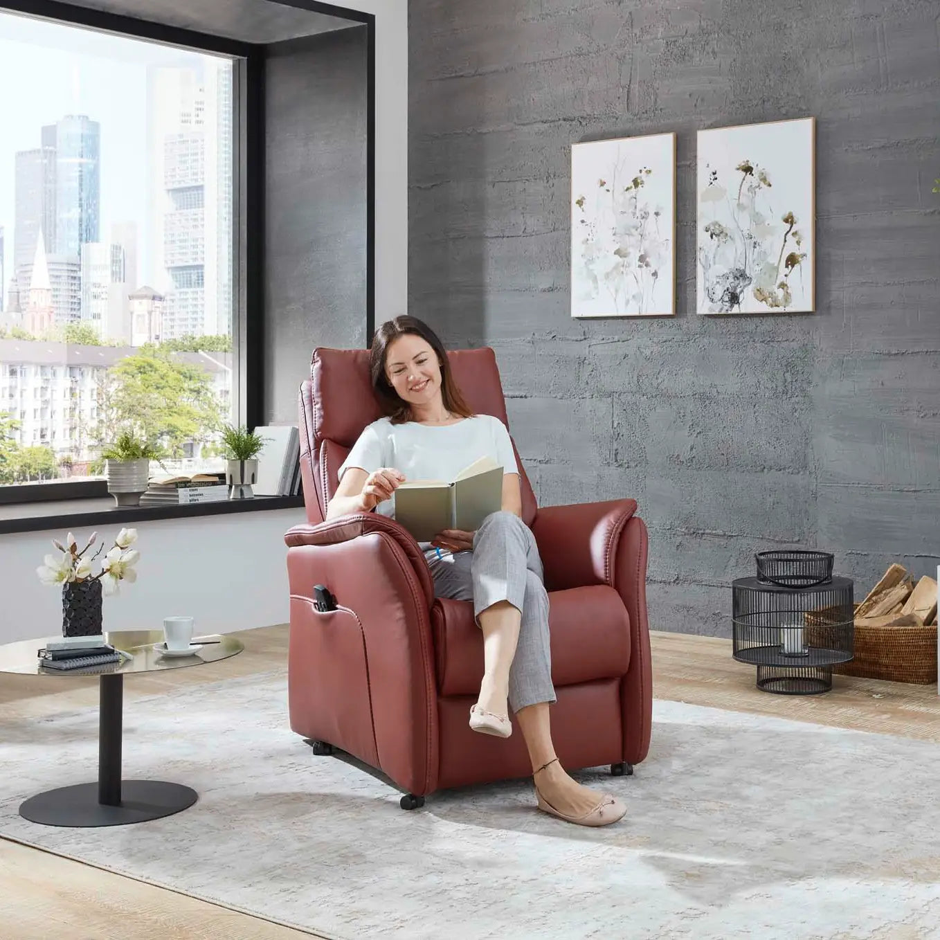 Elektrische verstelling, sta‑op ondersteuning, en ergonomische nekkussens zorgen voor maximaal comfort in elke houding.