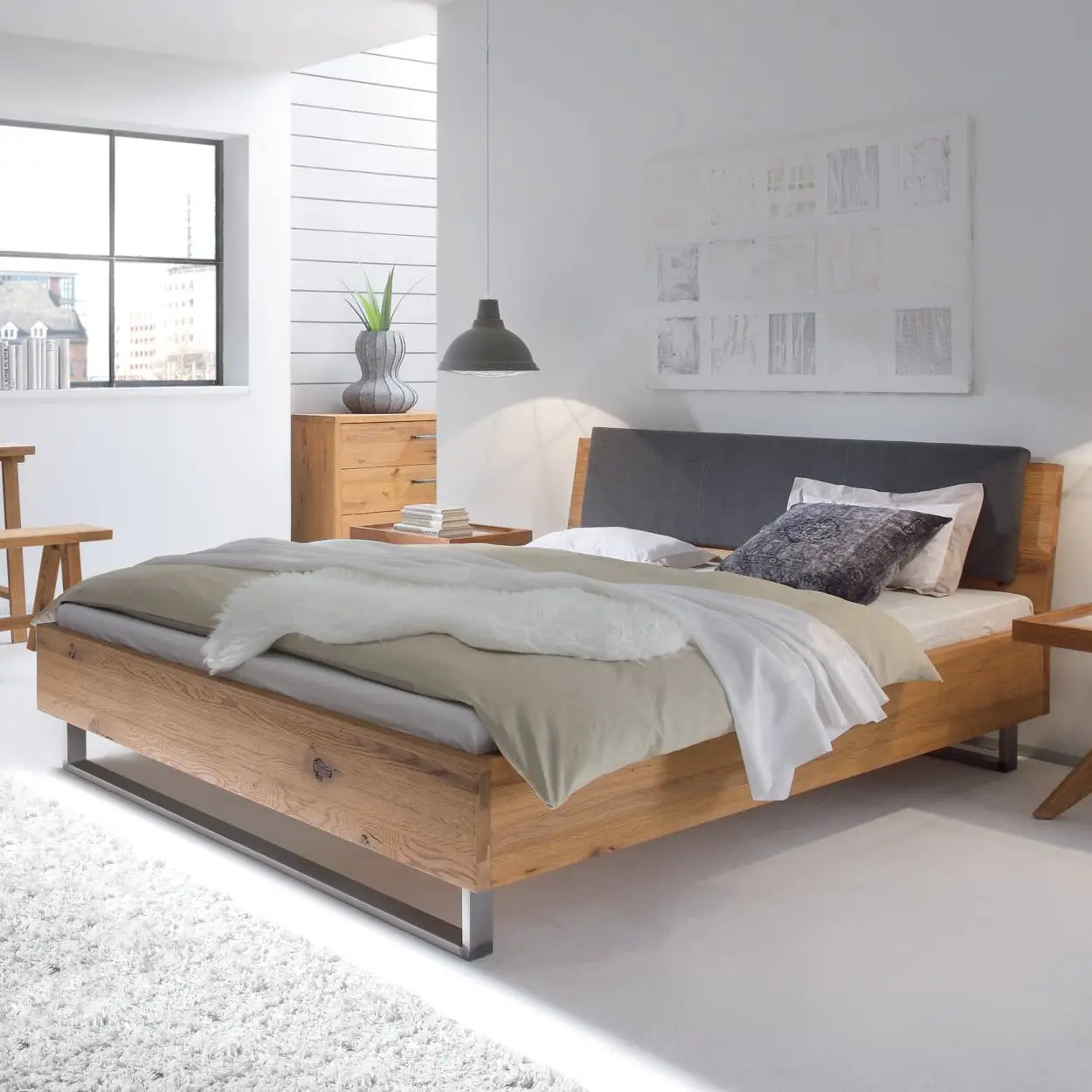 De Oak-Wild collectie brengt de levendige uitstraling van geborsteld en geolied wildeikenhout samen met moderne rustieke lijnen. Elk bed heeft een uniek karakter dankzij zichtbare nerven en knoesten. Dankzij het modulaire systeem stel je je bed volledig samen met opties als opberglades, opklapbare bodems en zelfs hemelbedvarianten met gordijnen in wit of antraciet.