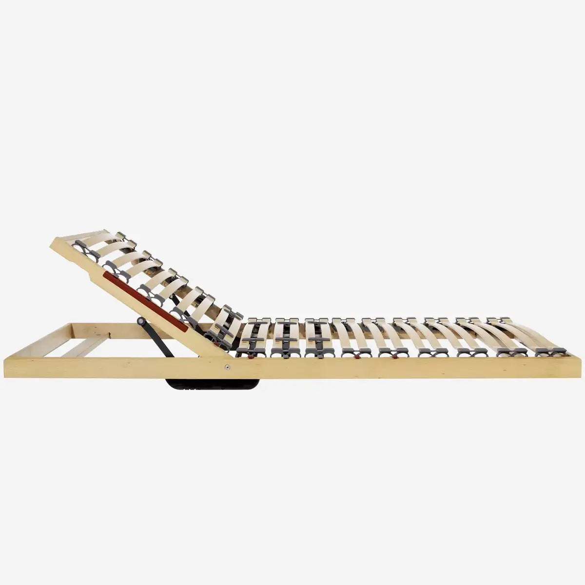 Elektrisch verstelbare lattenbodem met motor aan het rugdeel, bekkendaling en individueel instelbare latten – ergonomisch comfort en vakmanschap uit Duitsland.