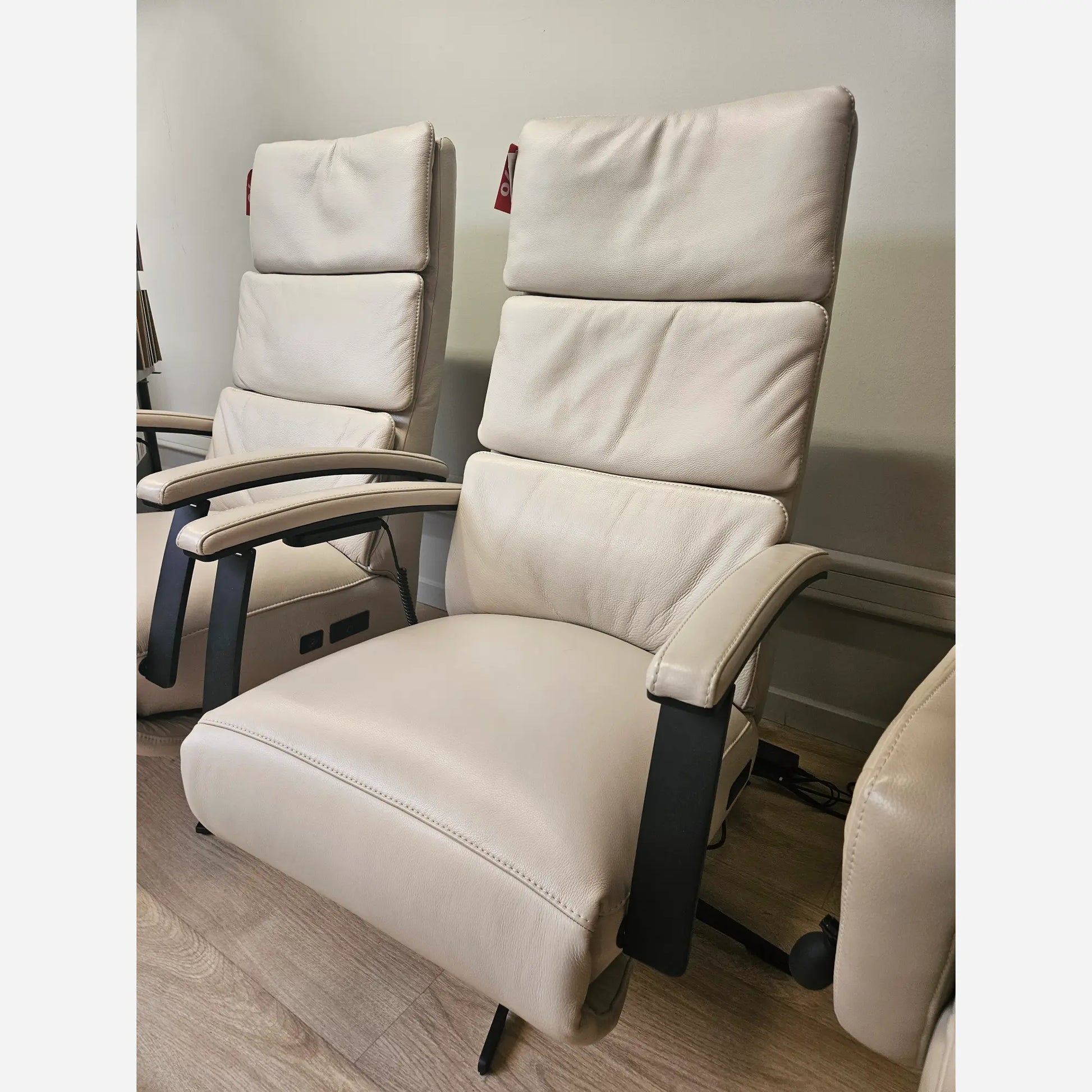 Small Elektrische Relaxzetel, Leder Lucca Kiezel, arm zwart, bedieningskastje aan snoer + magneet, Elektrische opblaasbare lendensteun, comfort memory optie, 3 Motorisch, Herz-waage