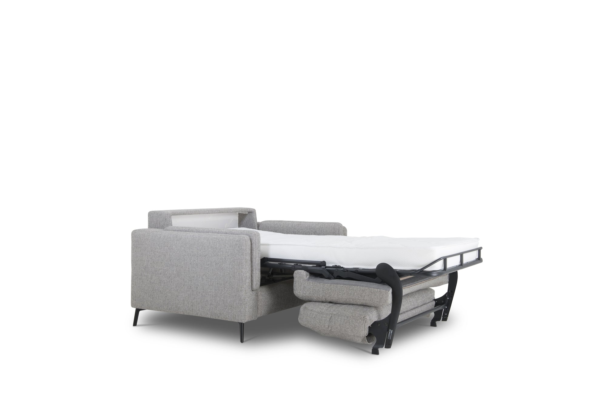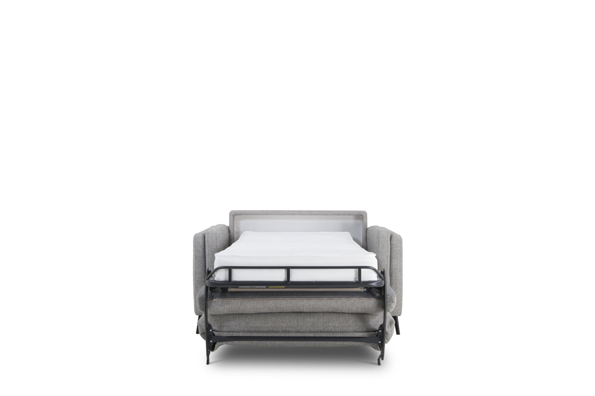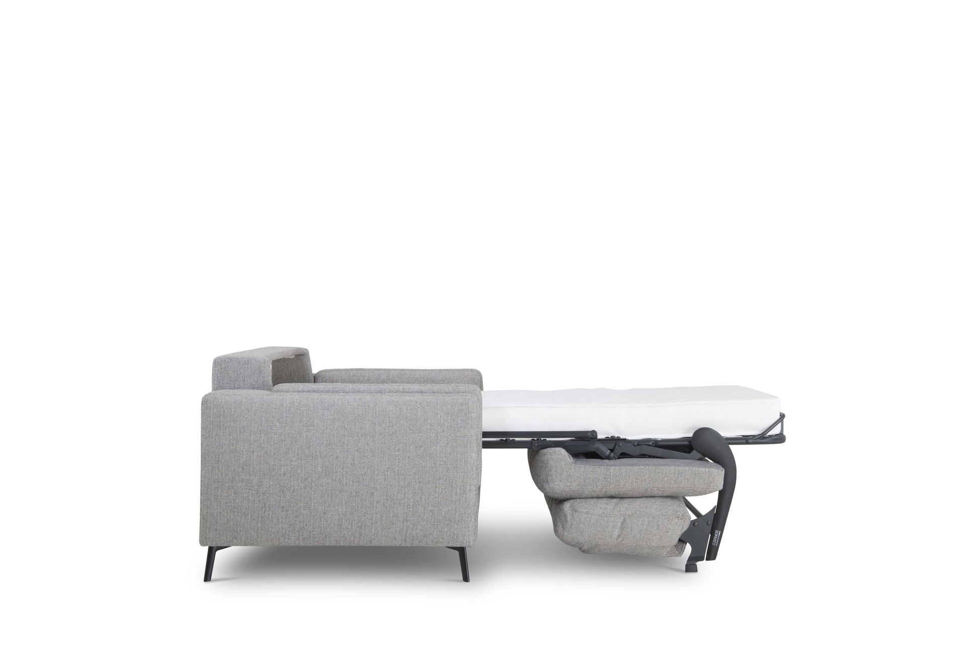 Ontvouw het bed eenvoudig door aan de lus te trekken. De rug-en zitkussens zullen volgen en verdwijnen aan de onderkant. Zowel voor het ontvouwen als het opbergen is niet veel kracht nodig.