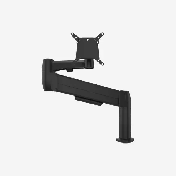 De Space-arm Single van BakkerElkhuizen is een stevige en flexibel instelbare monitorarm voor één scherm (10–24″, tot 7,5 kg), ontworpen voor een ergonomische werkhouding. Dankzij de gasveer stel je hoogte (33–62 cm) en diepte (tot 58 cm) moeiteloos af. Het scherm is 360° draaibaar, kantelbaar en roteerbaar, zodat je altijd de juiste kijkhoek vindt. De arm is compatibel met VESA 75×75 en 100×100 en wordt bevestigd via bureauklem of bladdoorvoer. Gemaakt van duurzaam aluminium en voorzien van geïntegreerd kabelbeheer, zorgt hij voor een nette, efficiënte werkplek.