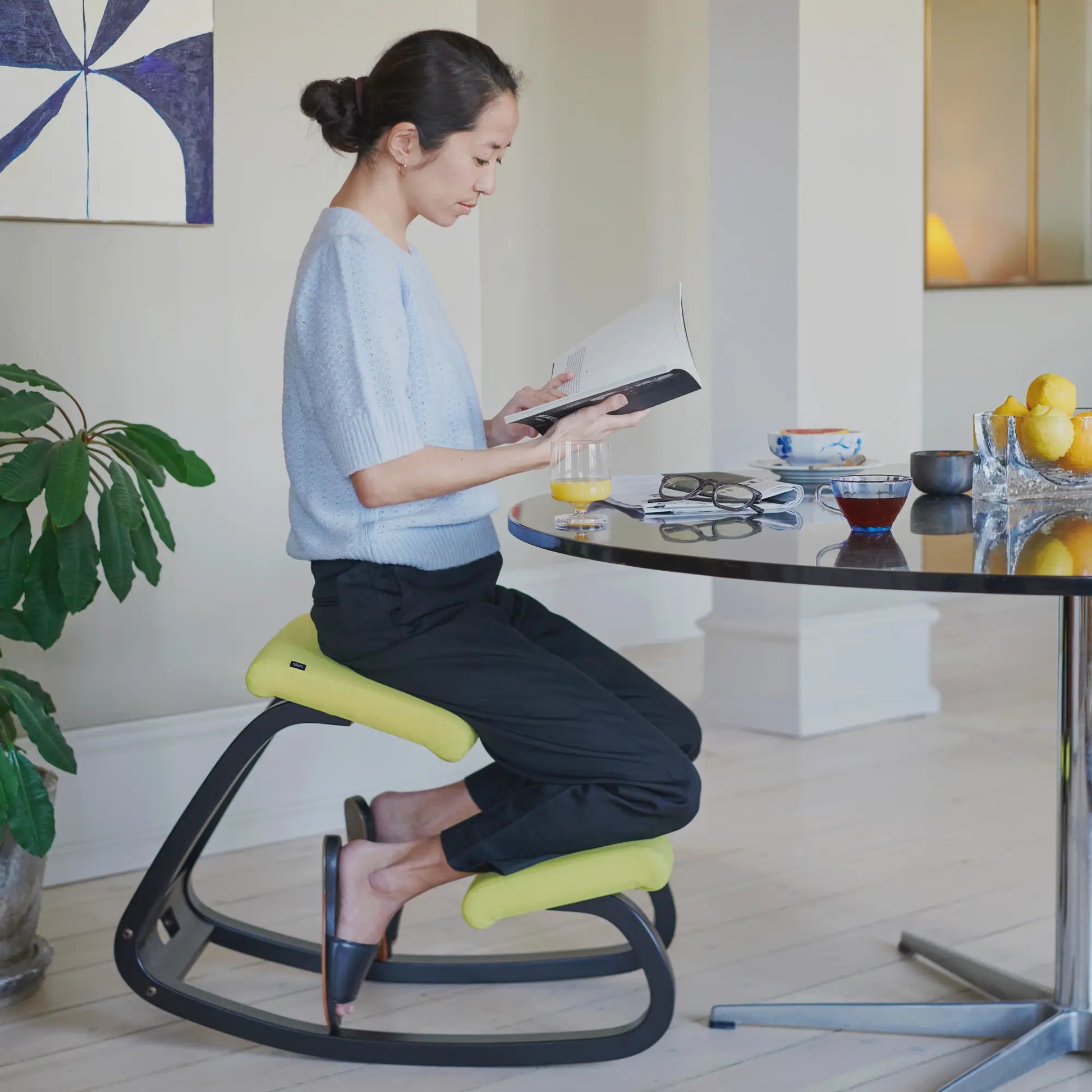 De Variable nodigt het lichaam uit tot natuurlijke, constante beweging. Door de kniesteun worden heupen en bekken automatisch in een open, rechte positie gebracht. Het resultaat? Een betere lichaamshouding, ontspannen schouders en een sterkere onderrug.